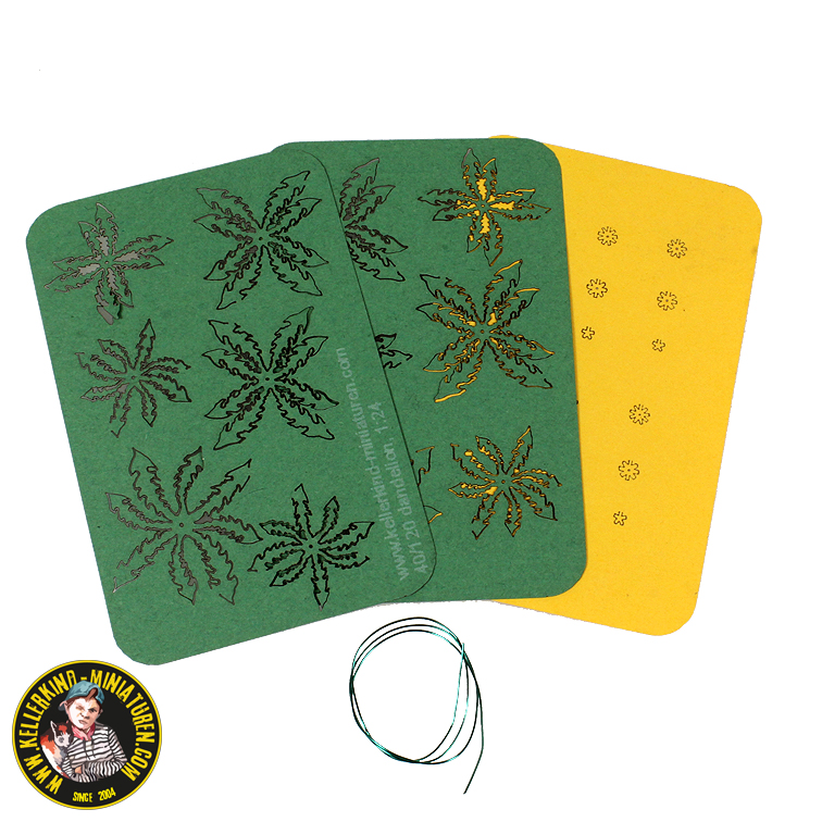 Teile: 12 große Pflanzen, 6 Blüten, 1 Stück Draht